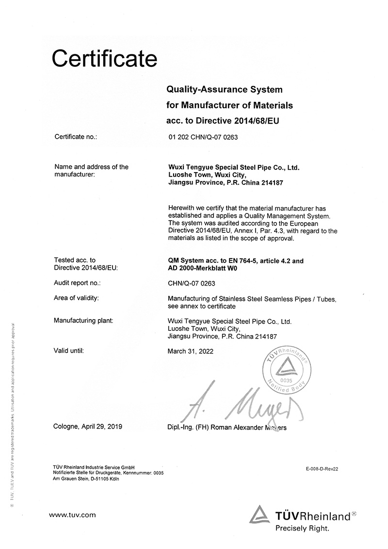 無錫騰躍特種鋼管有限公司創建于1987年,地處江蘇省無錫市惠山區洛社鎮。公司占地面積18萬平方米,現有員工350人,是一家專業生產不銹鋼無縫管的企業,年產能5萬噸。主要規格:外徑6~630mm、壁厚0.7~40mm。主要材質:奧氏體、奧氏體-鐵素體、鎳基合金等。 公司是中石化、中石油、中海油、核電的供應商網絡成員單位,是江蘇省AAA級信用單位。公司先后通過ISO9001質量管理體...
